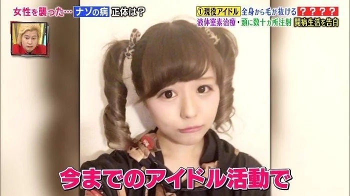 尽管如此,她还是一边隐藏着正在掉发的事实一边进行演唱会活动。4 个月之后,连后脑勺区域也出现了脱发症状!