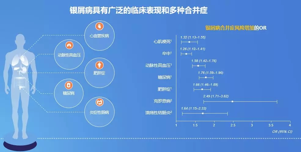 银屑病除合并关节损害外,还可合并其他损害如伴内脏损害、代谢综合征、动脉粥样硬化性心血管疾病以及克罗恩病等~