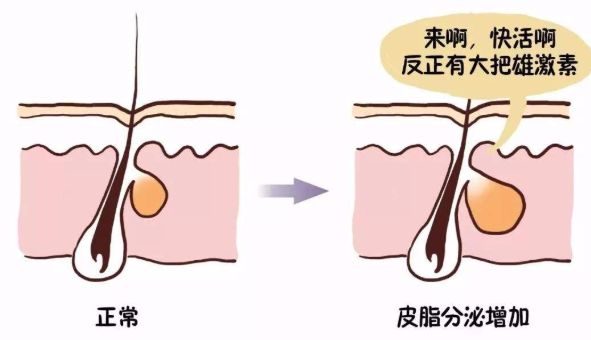 关于皮脂分泌过剩,引起的原因较多,比如:雄性激素分泌过高、外环境温度高、面部过量的油性刺激物等,都会导致油脂分泌旺盛,和皮脂分泌不同,一般造成毛囊皮脂腺堵塞,都是由于垃圾堆积造成,比如:化妆品堆积、多余皮脂、老废角质等大量的堆积。