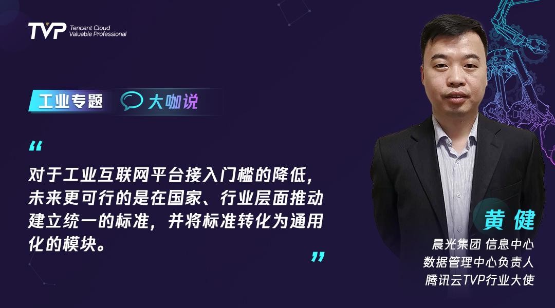 黄健老师认为其实未来更可行的是在国家层面,或者行业整体层面去寻找一个标准,然后大家在这个标准上去进行统一的发展。同时,在此过程中我们要把这个标准转化成一个通用化的模块,其他的设备都采用这样集成的模块,把它嵌入到里面,这能够有效降低整个工业互联网的平台接入的门槛。