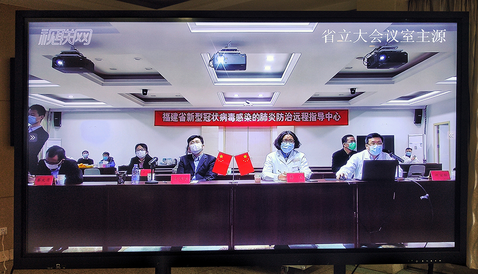 多名福建省医疗专家、疾控专家与加拿大医疗专家、流行病学专家通过视联网远程会诊系统,对中加两国在新冠肺炎的检测和治疗、方舱医院的建设和运行、社区的防控和防疫等话题进行交流和分享。