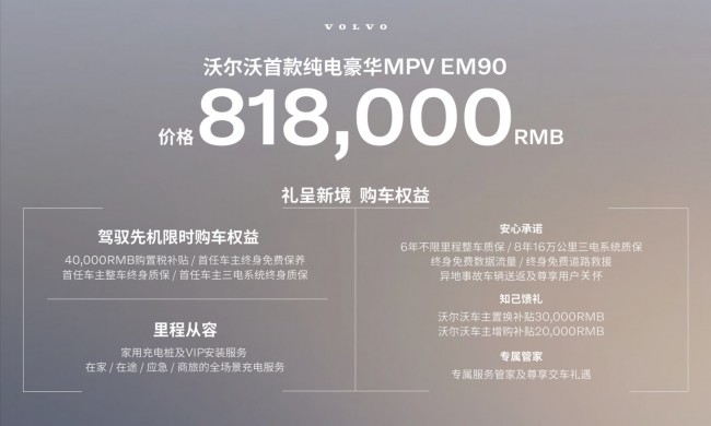 本篇文章转载自作者凤凰网汽车,标题《沃尔沃EM90正式上市 售价81.8万元》