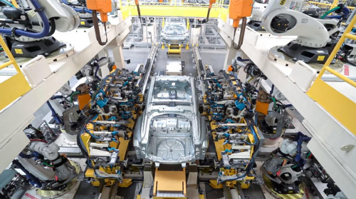 这座占地面积1174亩,建筑面积34.5万平方米,规划年产能30万辆乘用车的“超级生产车间”里,由AGV串联起的各生产岛台有序作业,实现大规模柔性定制和混线排产,同时生产领克01、01全球版、领克05、领克08车型。