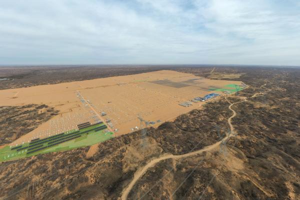 12月25日,华能靖边光伏项目施工现场航拍图。澎湃新闻记者 曹俊杰 图