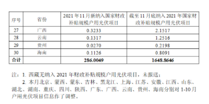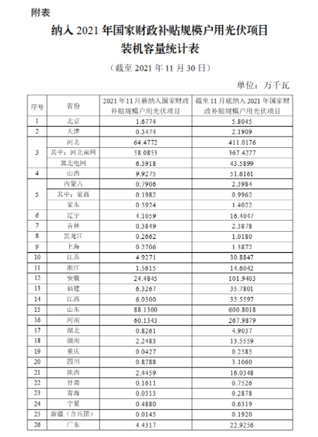 12月17日,国家能源局发布户用光伏项目信息(2021年11月)。