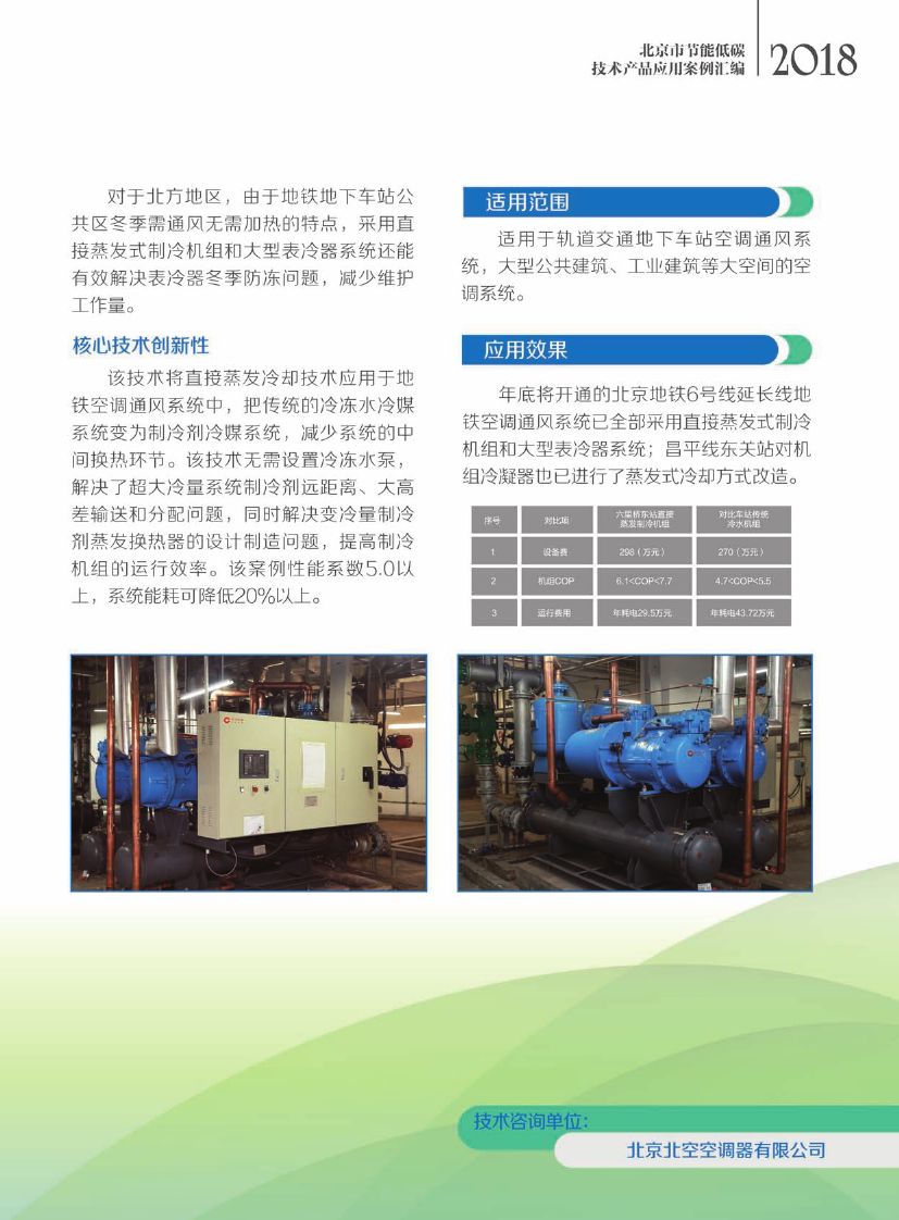 该技术将直接蒸发冷却技术应用于地铁空调通风系统,把传统的冷冻水冷媒系统变为制冷剂冷媒系统, 减少系统的中间换热环节;该技术无需设置冷冻水泵,解决了超大冷量系统制冷剂远距离、大高差输送和分配问题,同时解决变冷量制冷剂蒸发换热器的设计制造问题,提高制冷机组的运行效率。